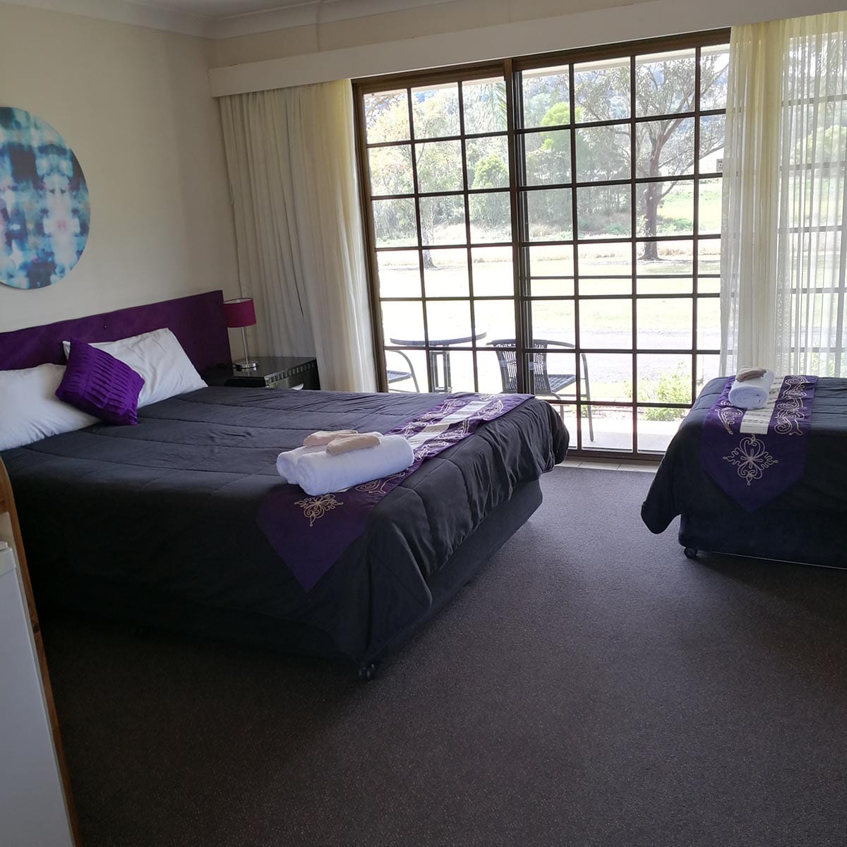 Air-conditioned room with queen bed and single bed, wifi, dining area, tea and coffee facilities, toaster, microwave, Foxtel, in room safe, ensuite with amenities and private terrace.